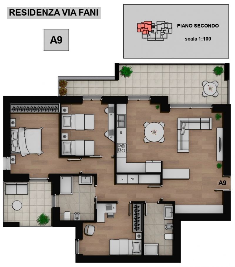 CARONNO PERTUSELLA in costruzione - zona stazione - via FANI - VENDESI tre locali più servizi con terrazzo coperto, possibilità di...